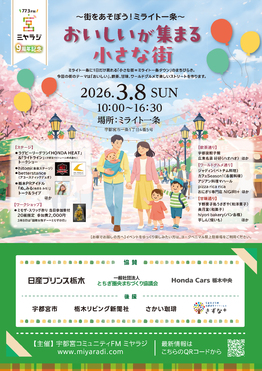 3月8日(日)ミヤラジ9周年記念~街をあそぼう!ミライト一条~「おいしいが集まる小さな街」開催します