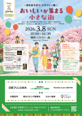 一部変更あり)3月8日(日)ミヤラジ9周年記念~街をあそぼう!ミライト一条~「おいしいが集まる小さな街」開催します
